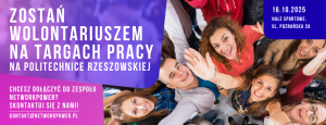 Poszukujemy Wolontariuszy do wsparcia przy organizacji Targów Pracy na Politechnice Rzeszowskiej! Jeśli chcesz wesprzeć organizację wyjątkowego wydarzenia i zdobyć cenne doświadczenie, ...